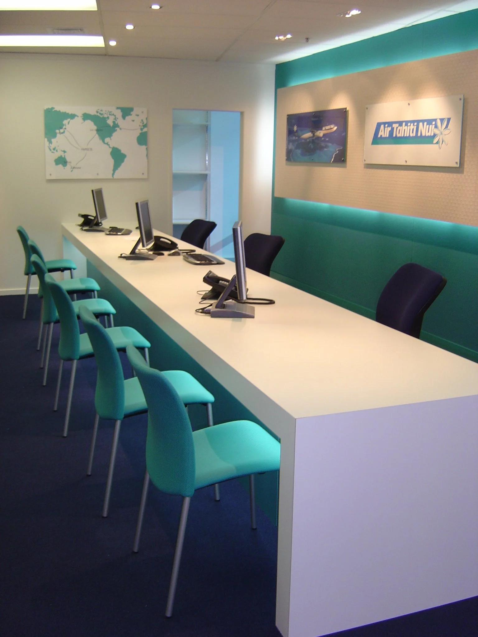 This is the first Air Tahiti Nui reservations office in New Zealand, and has set a standard for their worldwide offices. The office is an efficient space while maintaining a strong corporate image.